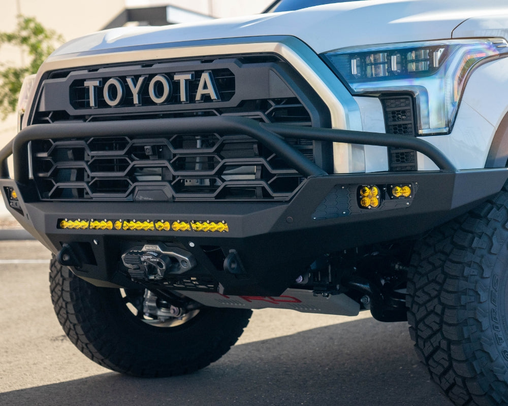 We upgraded this Tundra with some of our favorite enhancements: a durable winch for tough situations, a convenient Switch Pro system for easy control, and extra lighting including fog lights and light bars for better visibility. Plus, ICON suspension upgrades for a better ride.