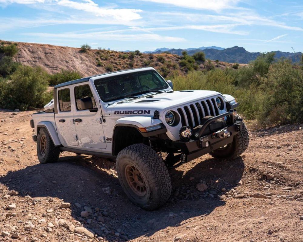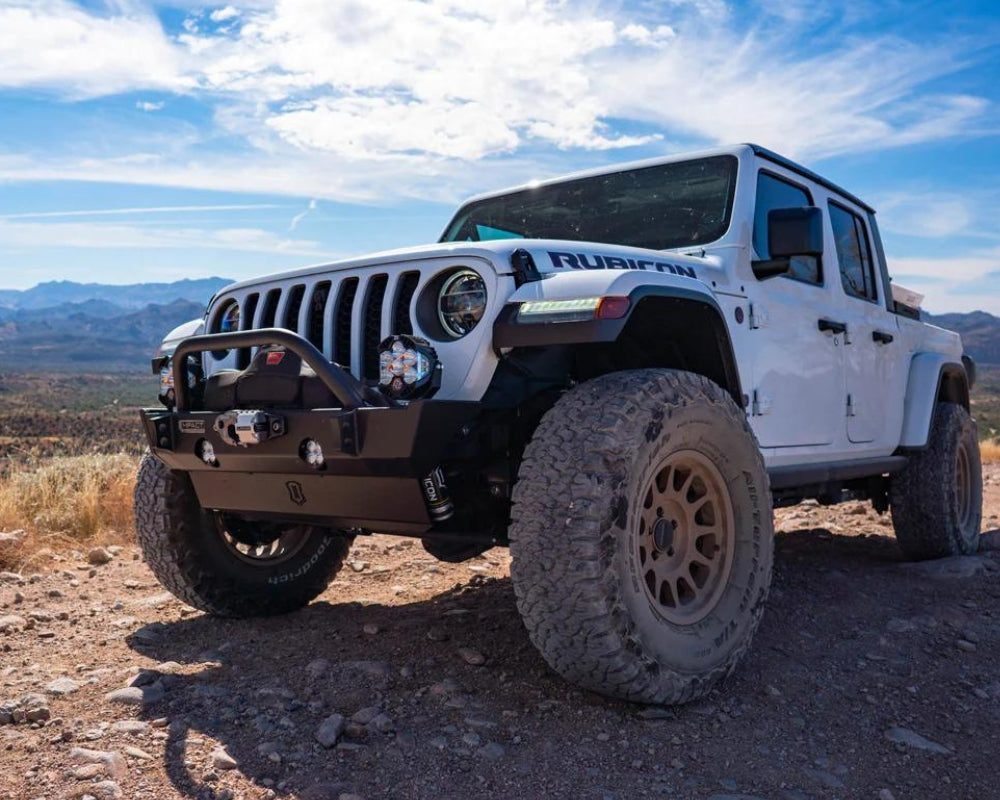 Take a closer look at our #SDHQBuilt Jeep Gladiator, a testament to elite craftsmanship. We've elevated its capability with a 2.5" suspension system by Icon Vehicle Dynamics and incorporated robust suspension components from Synergy Manufacturing. Its strength is augmented with the Dynatrac Core Plus SX60/80 Axle Set. Aesthetically, the Gladiator boasts the Impact Series Front Bumper from Icon Vehicle Dynamics, perfectly complemented by wheels from Icon Alloys and rugged Toyo M/T Tires.