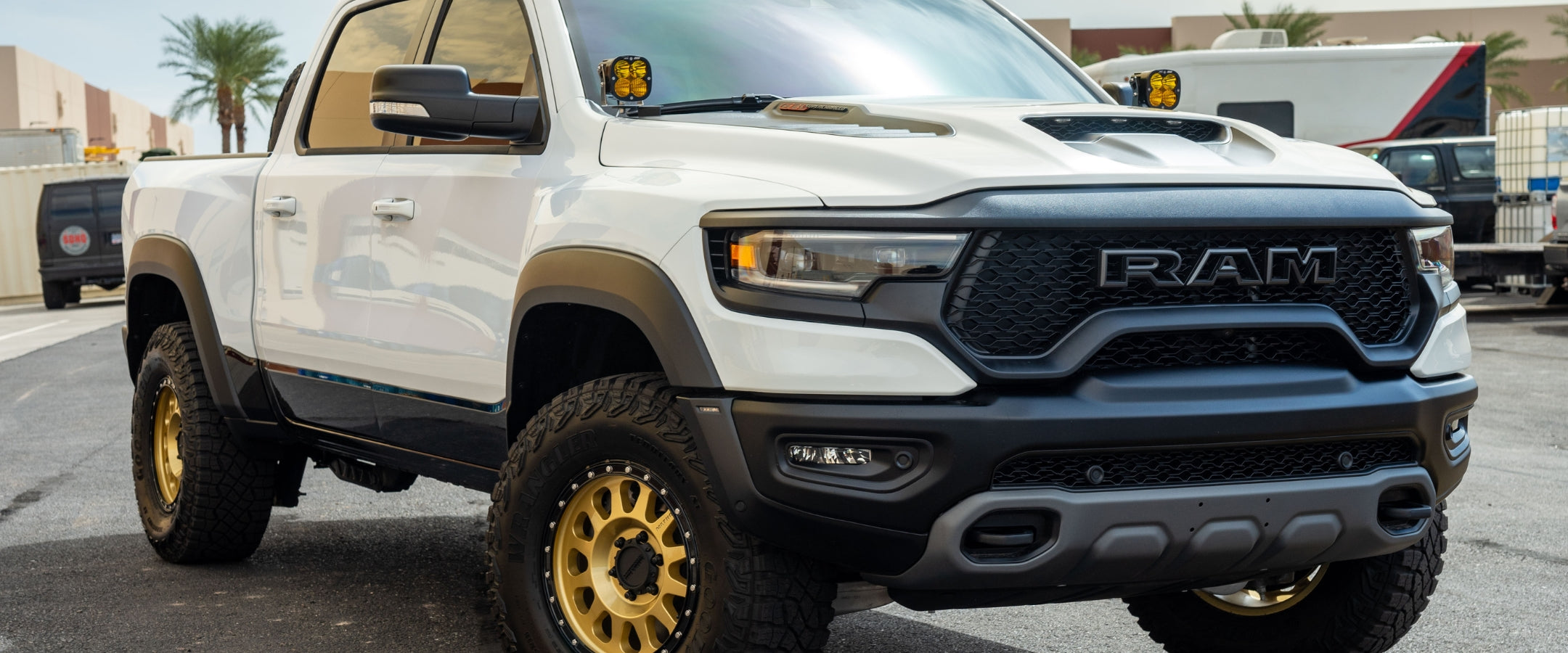 Take a look at phase one of Cory's SDHQ Built Ram TRX Build. In this phase, we outfitted Cory's TRX with our SDHQ Built products, including A-pillar light mounts, shock guards, ABS guards, a chase rack, and Baja Designs lighting. Stay tuned for more updates on this impressive build!