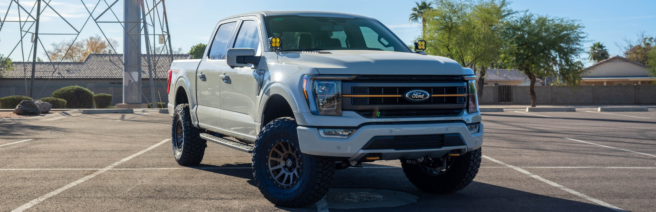 This F-150 Tremor has been upgraded with ICON suspension for enhanced off-road performance. Additionally, it features Baja Designs XL 80 lights mounted on SDHQ A-pillar mounts for superior lighting and visibility on any terrain.