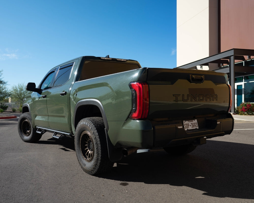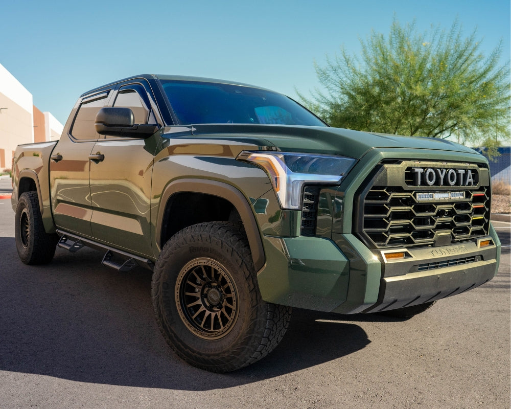 For this specific 2022 Toyota Tundra, we've upgraded the suspension with ICON Vehicle Dynamics components. This upgrade significantly improves the truck's handling and stability, ensuring a smoother and more responsive driving experience, both on and off the road.