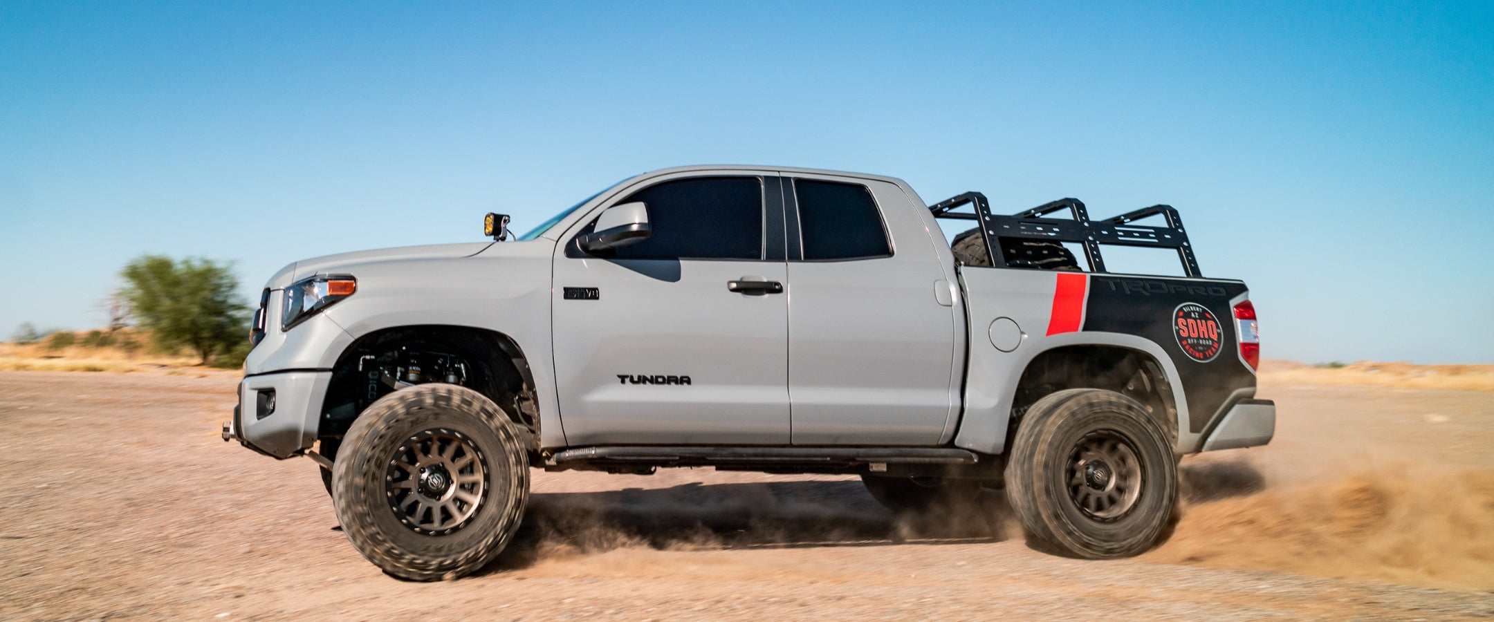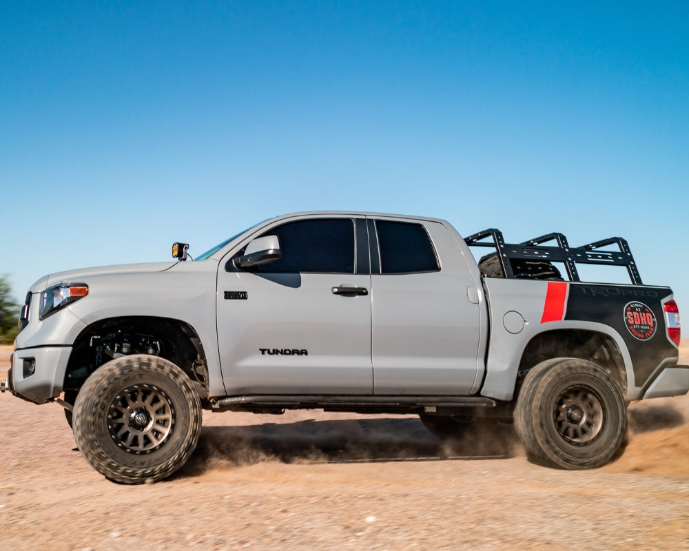 We set up this Tundra with Baja Designs lighting and a RCI bed rack system. It's designed for maximum utility and durability, making it perfect for carrying gear, tools, or adventure equipment. This upgrade transforms your Tundra into a versatile vehicle ready for work or play.