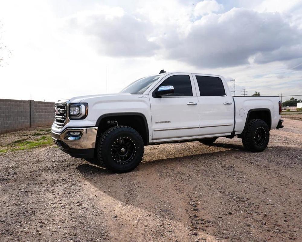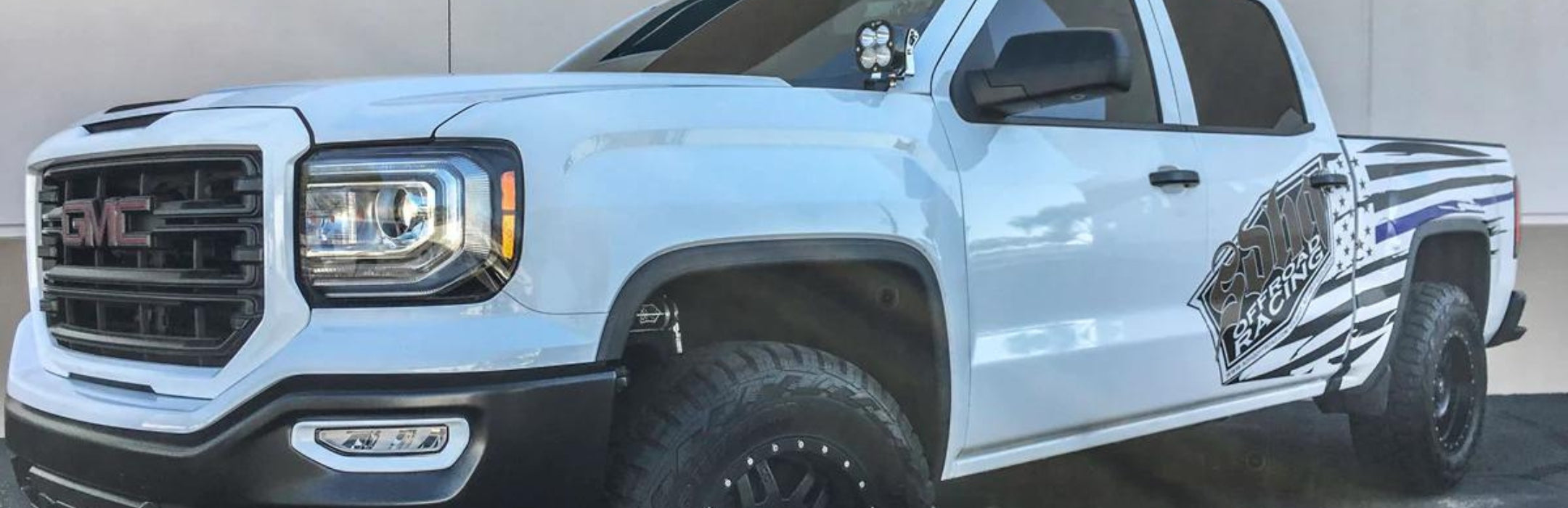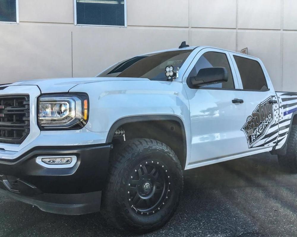 This SDHQ Built 2017 GMC 1500 is equipped with Baja Designs LED Auxiliary, Icon Vehicle Dynamics suspension system, Icon Alloy Wheels, Toyo Tires and SDHQ Built Products.