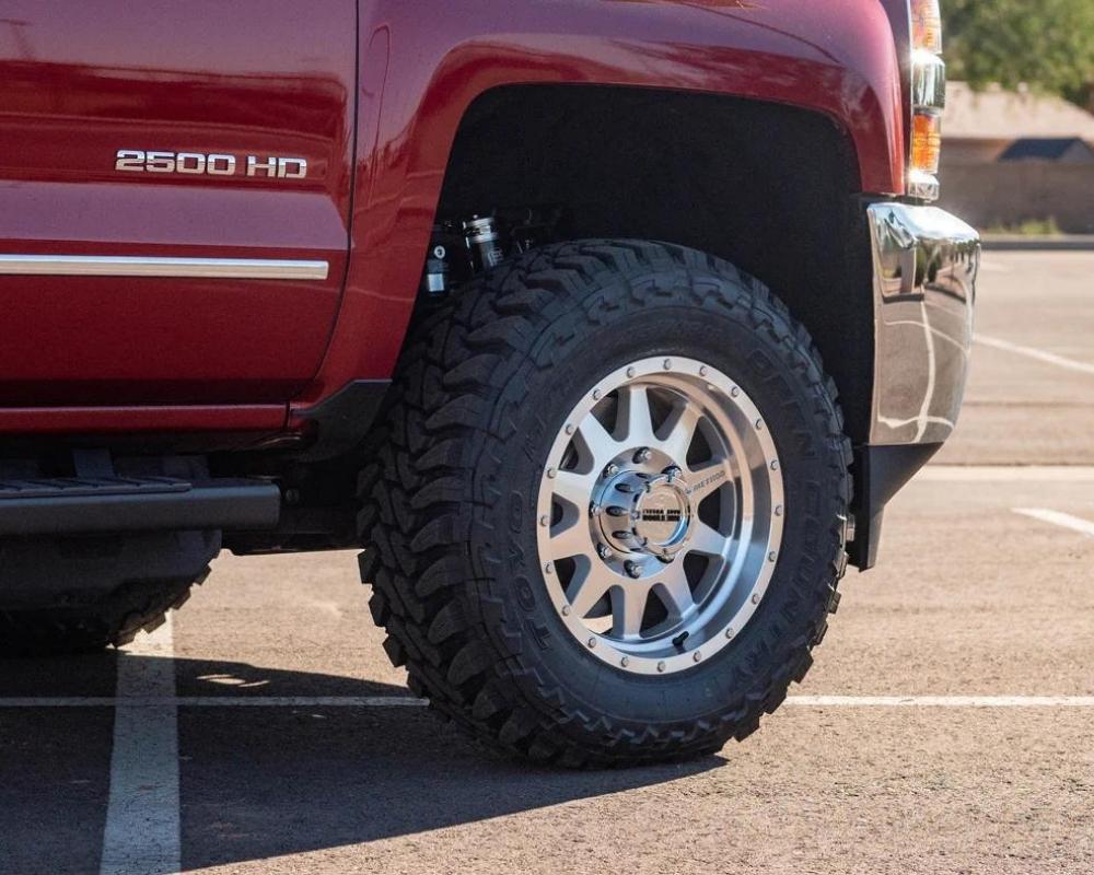 This Chevy was outfitted with Icon Vehicle Dynamics suspension components lifting the front of the Chevy 2" and the rear 1.5". Giving this 2500HD a leveled out look. This build also features 18" Method Standard Wheels wrapped in Toyo M/T Tires.
