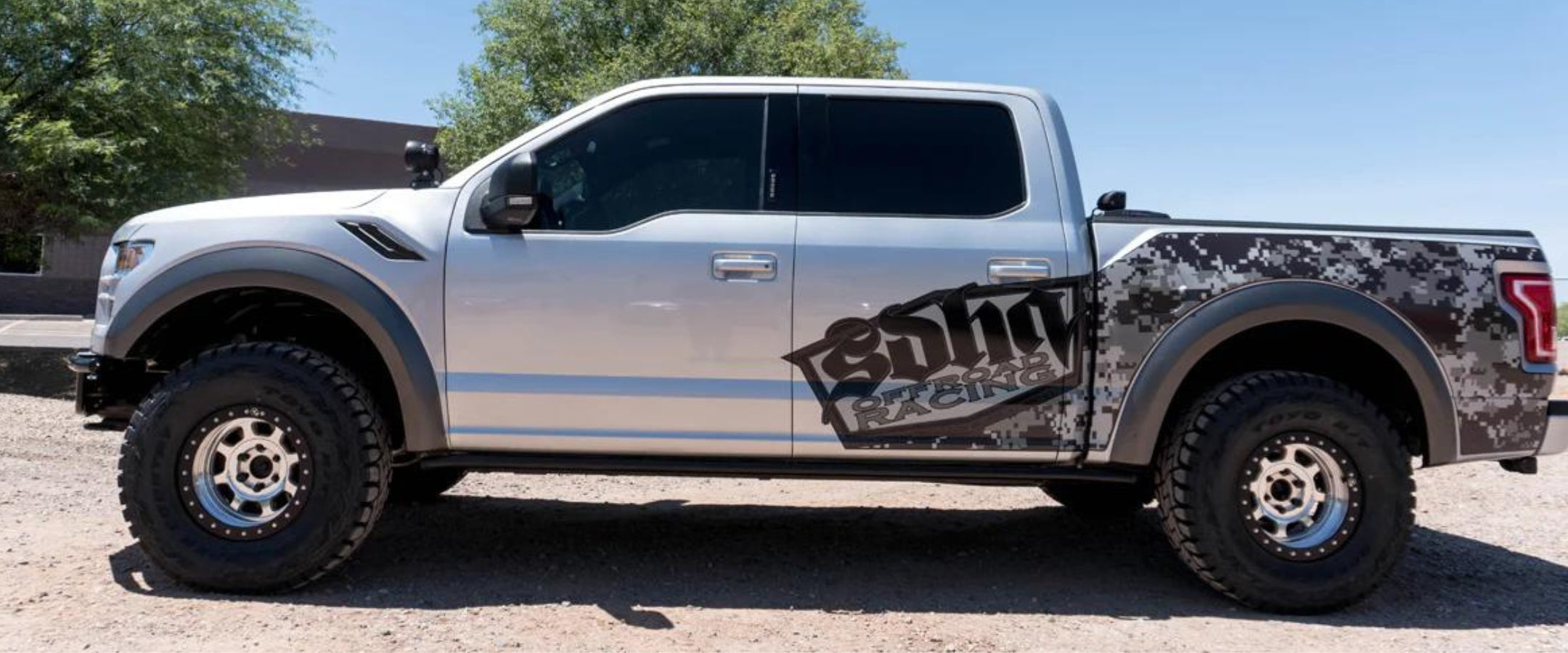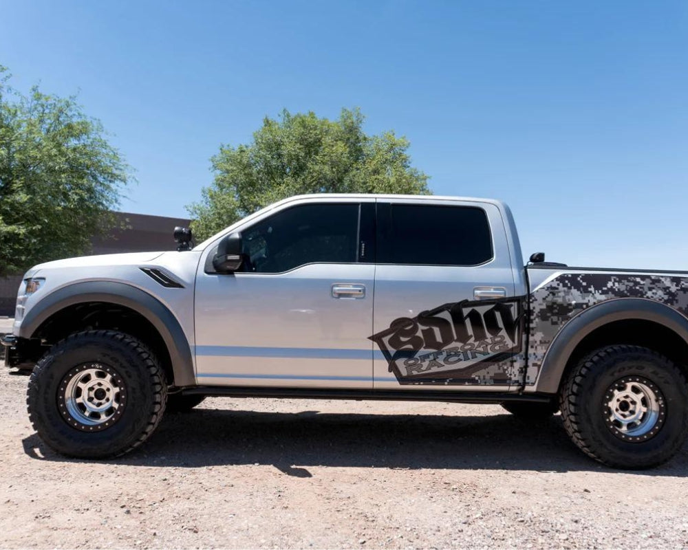This 2015 Ford F150 was outfitted with an Icon Vehicle Dynamics Suspension, and Vision X LED Lighting, SDHQ Built A-Pillar Light Mounts, Custom SDHQ Front Bumper, AMP Powersteps, Walker Evan's Wheels, and Toyo R/T Tires.