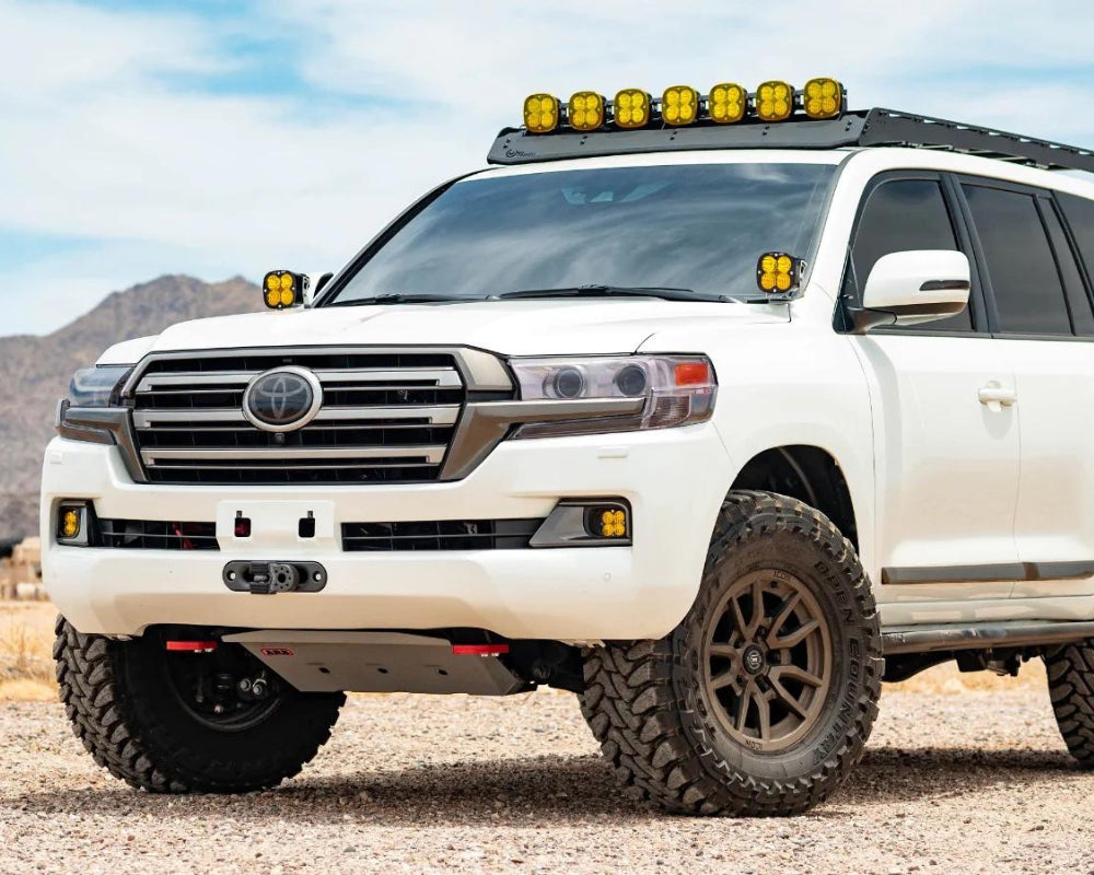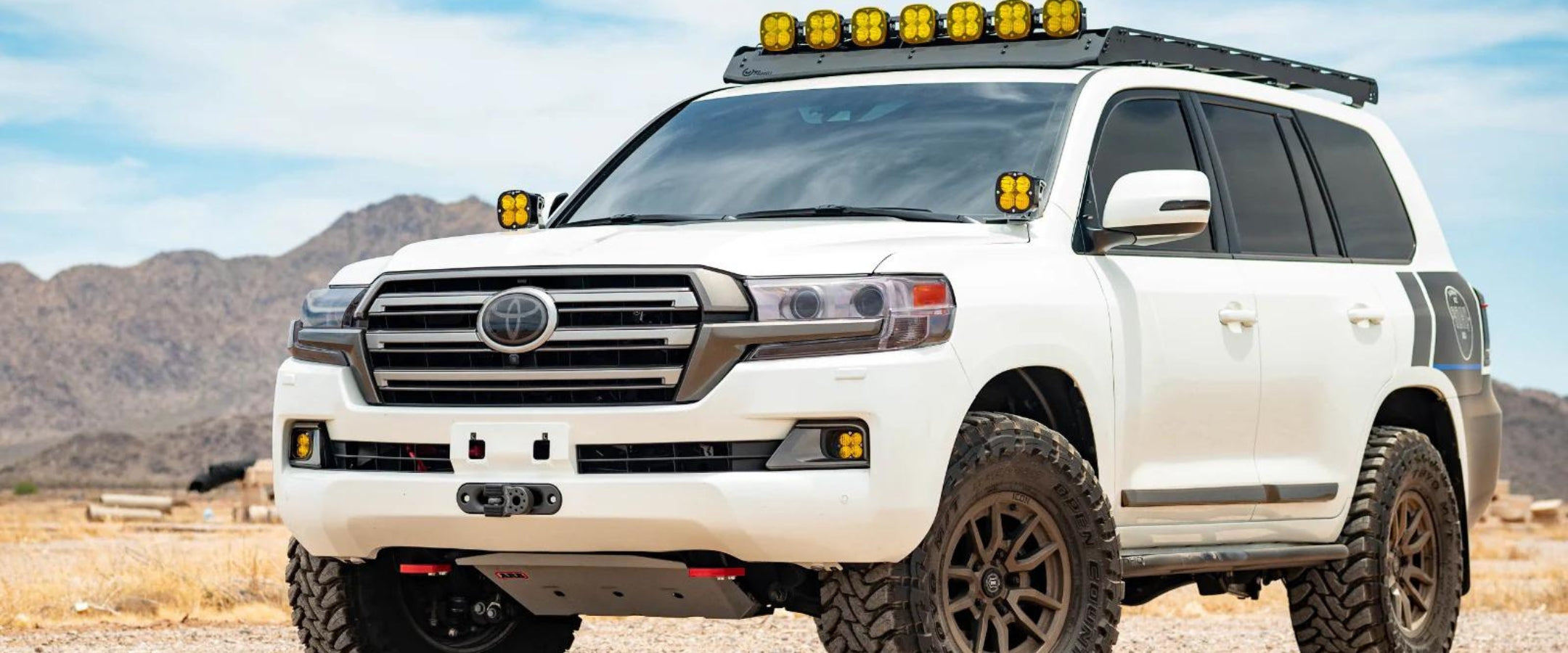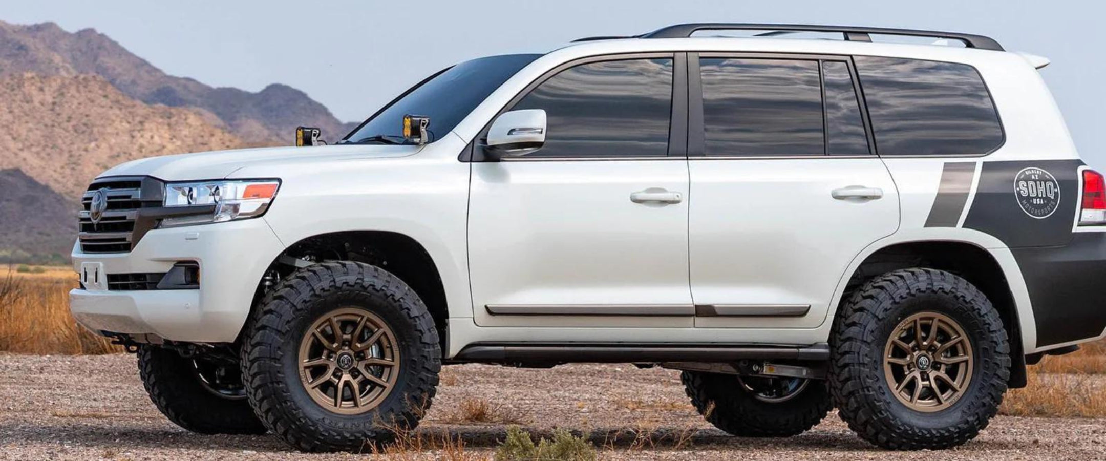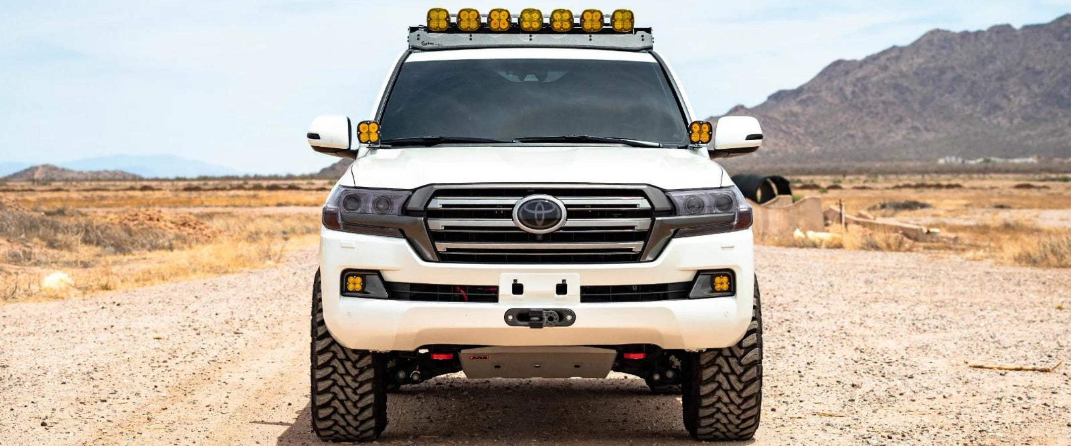 Equipped with an ICON Vehicle Dynamics suspension system, Icon Alloys Vector 5 Wheels, Harrop Supercharger, Prinsu Roof Rack, ARB Full Skid Plate System, ARB Recovery Point Kit, and Baja Designs LED Lights. Our SDHQ Built 200 Series Toyota Land Cruiser is the perfect blend of comfort and performance.